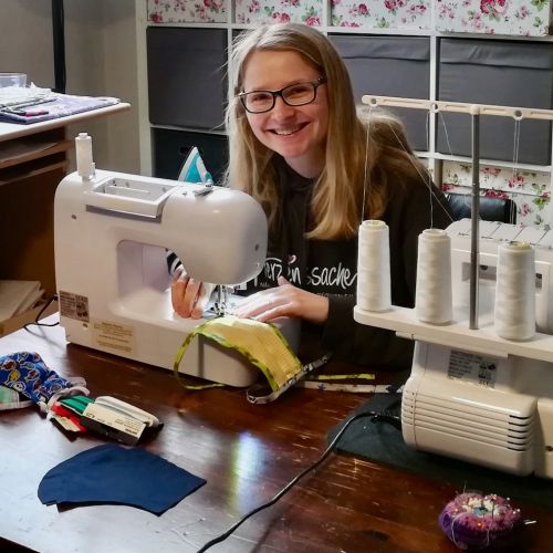 Die ehrenamtlichen Mitglieder des Brandenburger Vereins „Herzenssache – Nähen für Sternchen und Frühchen e.V.“ (NfSuF) nähen für Kliniken provisorische Mundabdeckungen aus Baumwolle.